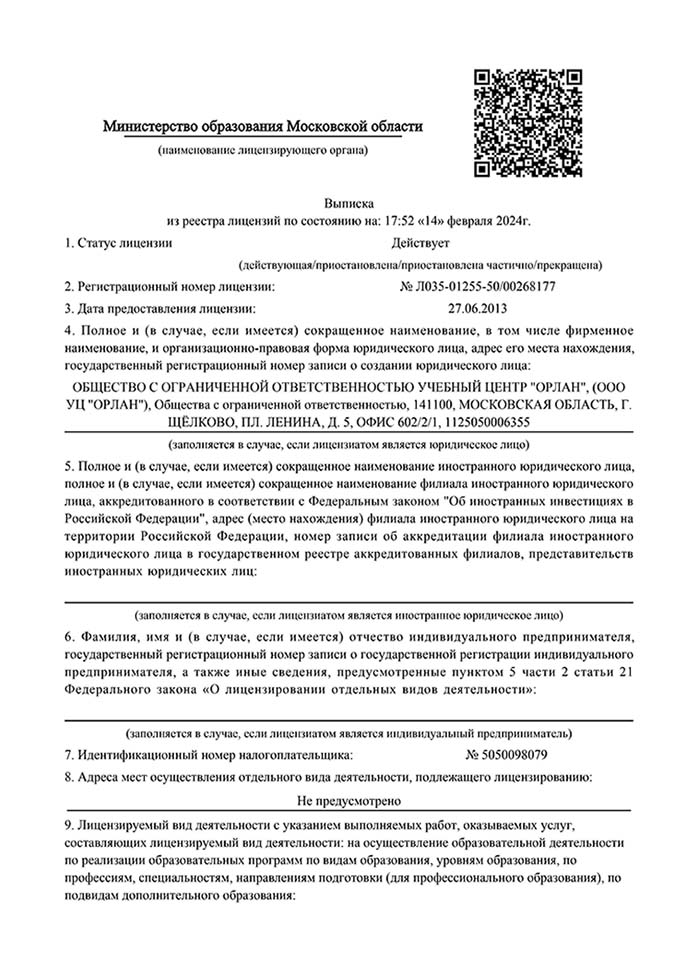 Автошкола «Орлан» имеет все необходимые лицензии и сертификаты для обучения водителей. Высококвалифицированные инструкторы и современная материальная база гарантируют успешное освоение навыков вождения и сдачу экзаменов в ГИБДД.