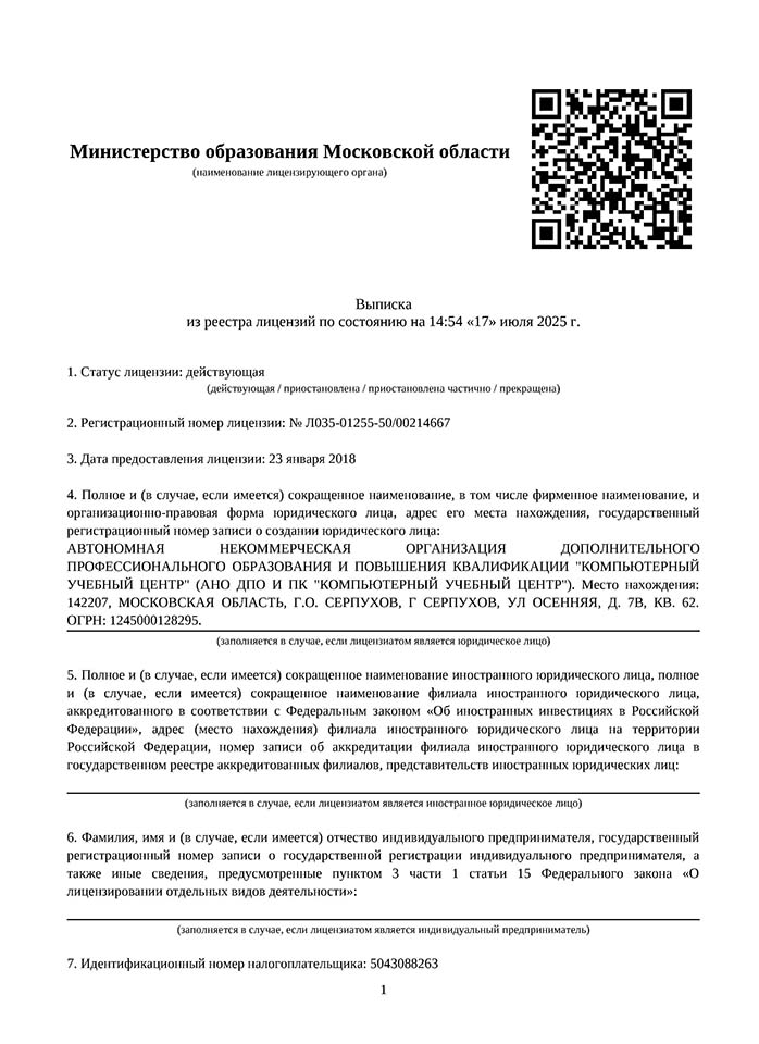 • Заключение договора происходит в офисе, в котором вы будете проходить обучение